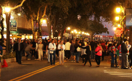 With Canal Street closed to traffic for the evening, families wandered freely through the district, enjoying extended hours from local shops, restaurants, and galleries. From cocoa and cookies to holiday displays in storefront windows, the entire street transformed into a walk-through winter celebration — Florida-style.