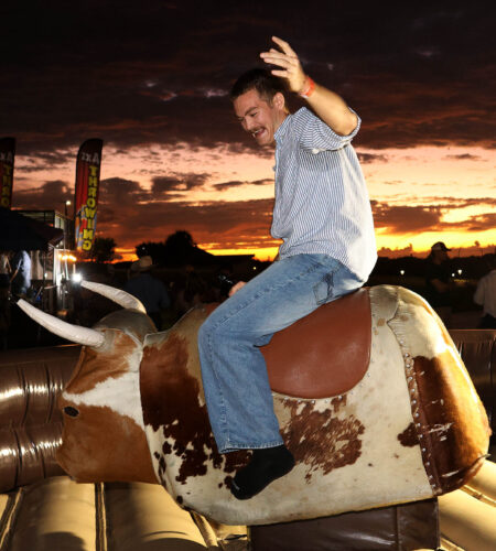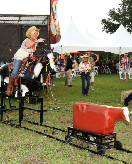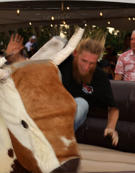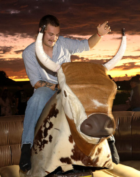 Guests also enjoyed a variety of crowd-pleasing activities, including a mechanical bull, axe throwing, rodeo roping challenges, and the always-popular “Wheelbarrow of Cheer” and “Jail & Bail” fundraisers. A silent auction offered an array of prizes generously donated by local businesses and community members, with proceeds supporting Rotary projects and charitable initiatives in the area.